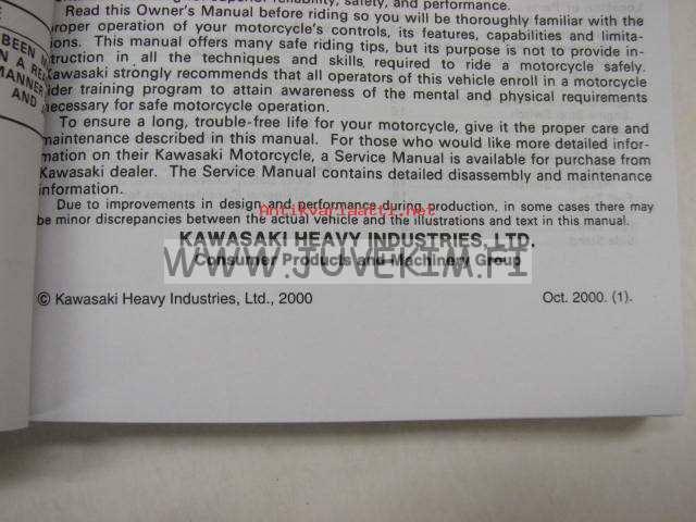 Kawasaki KMX125 owner´s manual -omistajan käsikirja englanniksi