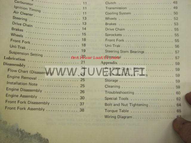 Kawasaki KX125 owner´s manual & Service Manual -omistajan käsikirja englanniksi