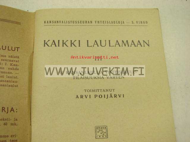 Kaikki laulamaan III 61 kansanlaulua yhteislaulutilaisuuksia varten
