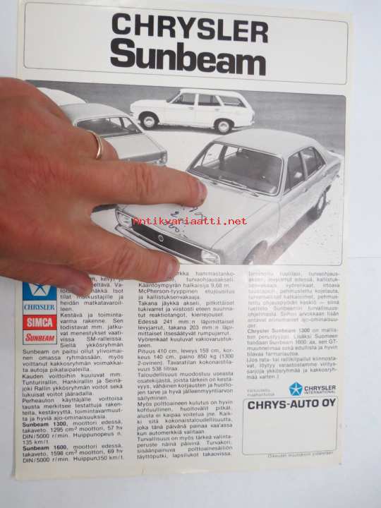 Chrysler Sunbeam -myyntiesite / sales brochure