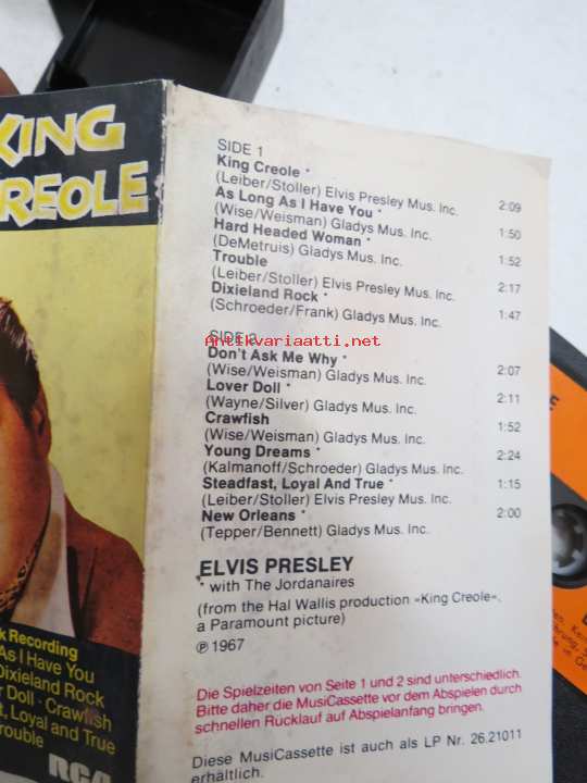 Elvis - King Creole, RCA PPK 1-7554 C-kasetti / C-cassette