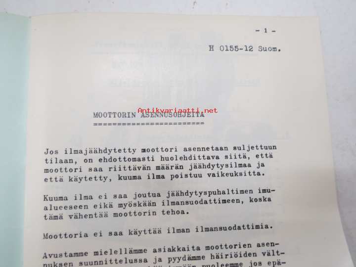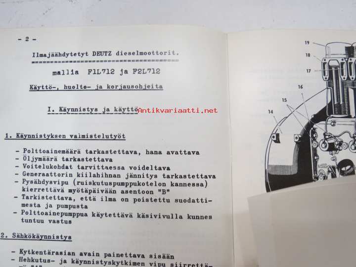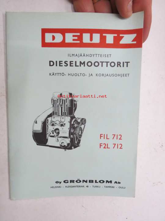 Deutz ilmajäähdytteiset dieselmoottorit mallit F1L 712, F2L 712 käyttö-, huolto- ja korjausohjeet -diesel engines - operator´s instructions, in finnish