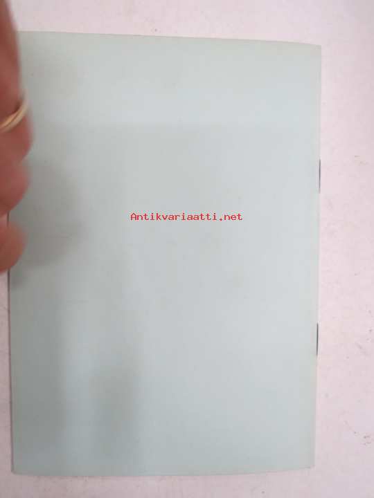 | Saatavilla | 0 kpl (Huom. tuote on myyty! / Sold out!) | | Julkaisuvuosi | 19?? | | Sivuja | 24 | | Painos | ? | | Kunto | K3 | | Sidonta/painoasu | Nidottu (pehmeäk.) | | Kielet | Suomi |