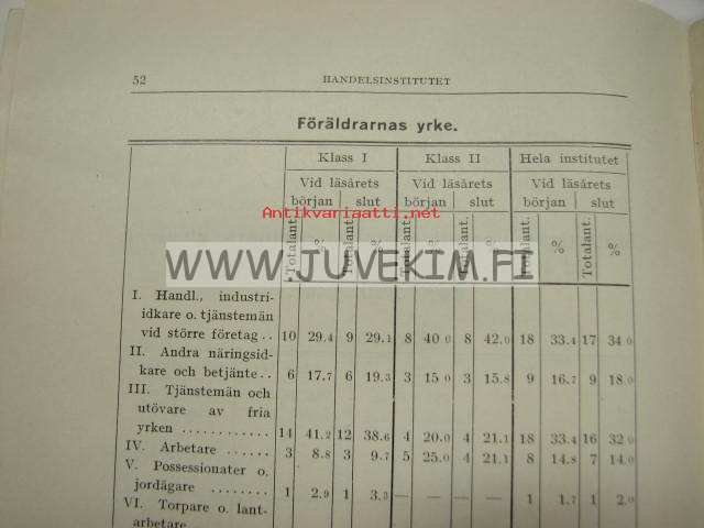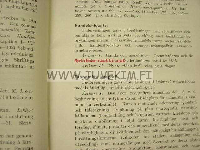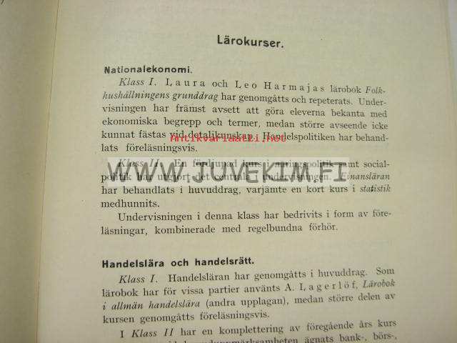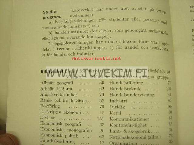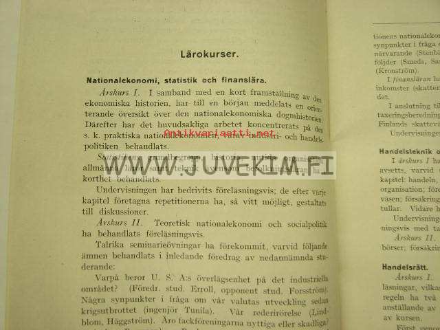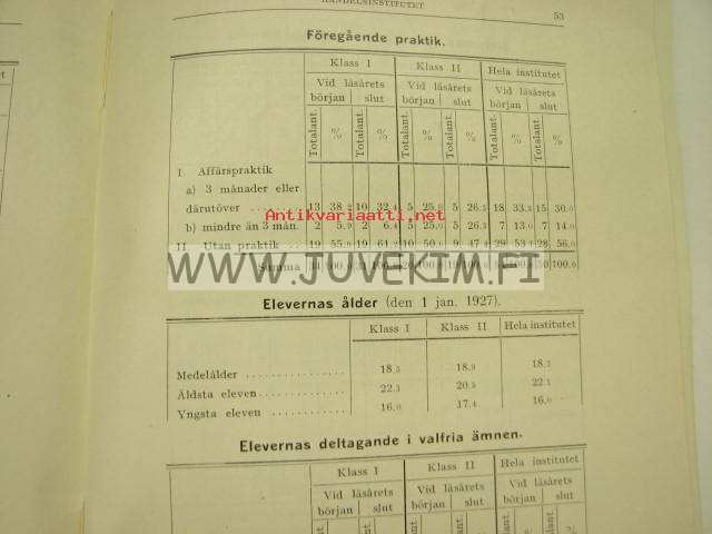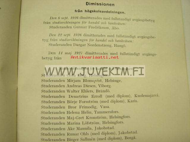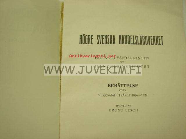 Högre Svenska Handelsläroverket Högskoleavdelningen och Handelsinstitut 1926-1927