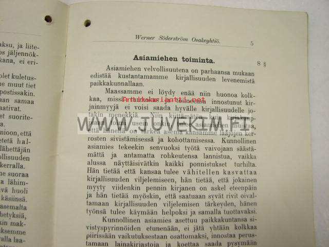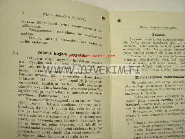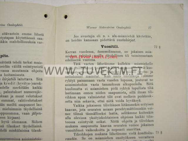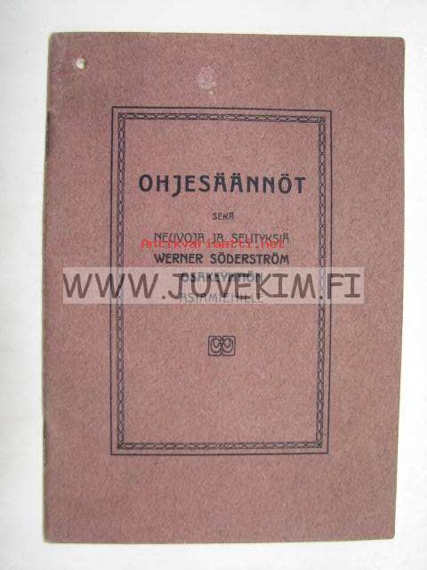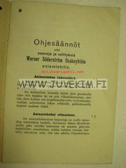 Ohjesäännöt sekä neuvoja ja selityksiä Werner Söderström Osakeyhtiön asiamiehille