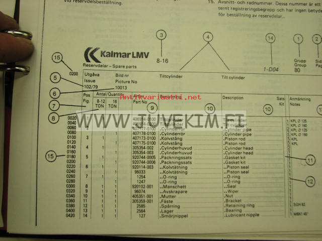 Kalmar LMW 28-42 Ton Parts Catalogue -haarukkatrukki varaosaluettelo