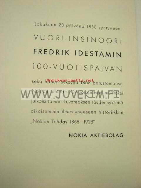 Nokia Aktiebolag -kuvateos, täydennysjulkaisu teokseen "Nokian Tehdas 1868-1928", ruotsinkielinen.