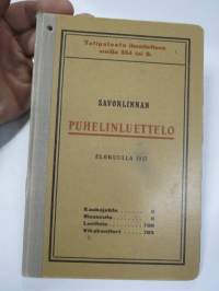 Savonlinnan ja ympäristön puhelinluettelo 1944, sisältää myös erillisen lisäluettelon