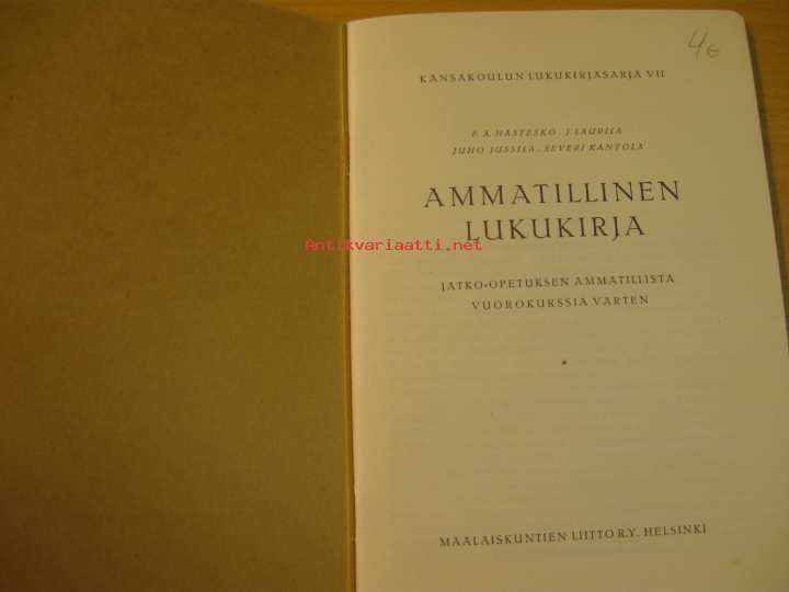 Hätesko, Laurila, Jussila, Kantola, Maalaiskuntien liitto r.y., 1930 12,5 x 19,5 cm kirja.