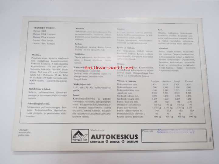 Datsun 100A / 120A -myyntiesite / sales brochure