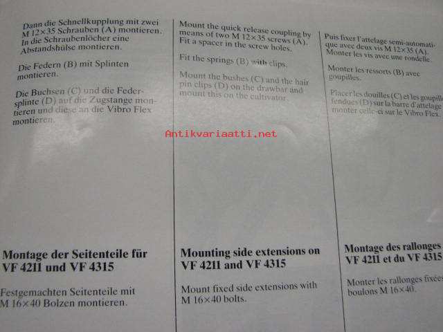 Kongskilde VF 4300, VF 4200 Assembly instructions -asennus- / säätöohjeet englanniksi