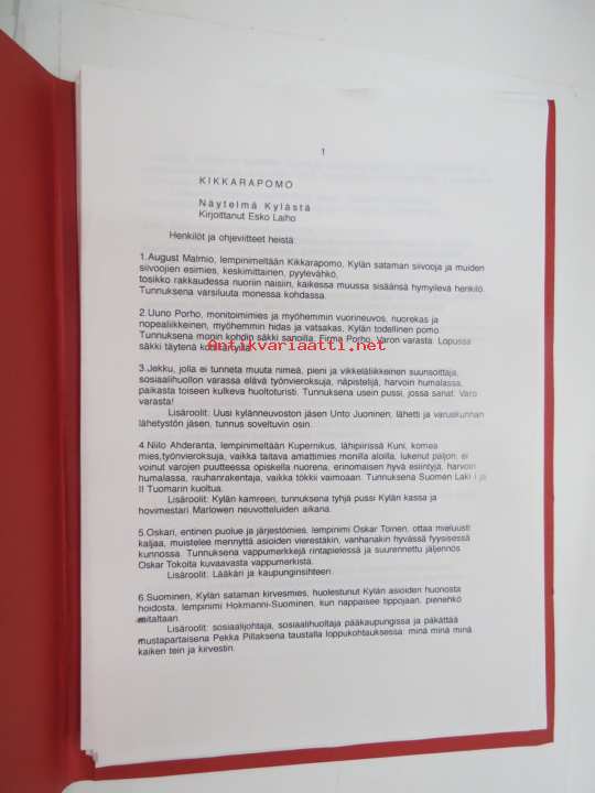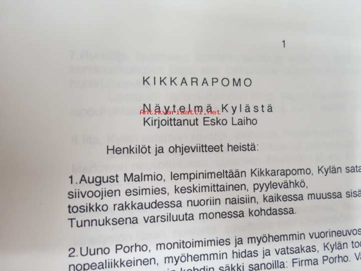Kikkarapomo - näytelmä Kylästä, kirjoittanut Esko Laiho, (ilmeisesti) julkaisematon käsikirjoitus