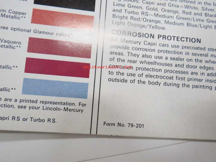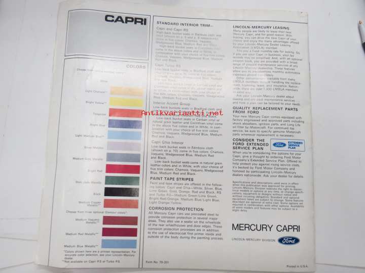 Mercury Capri 1979 -myyntiesite / sales brochure