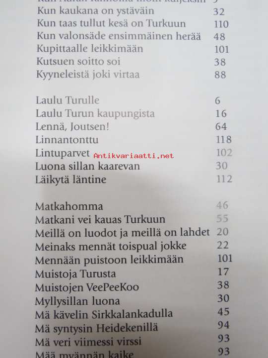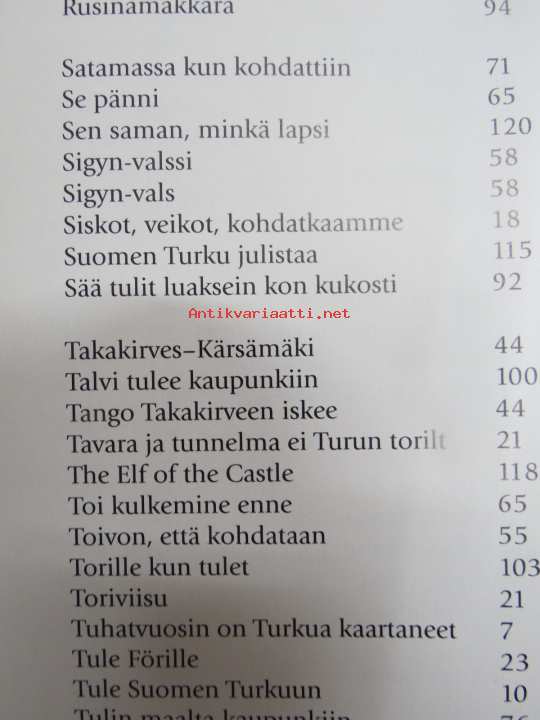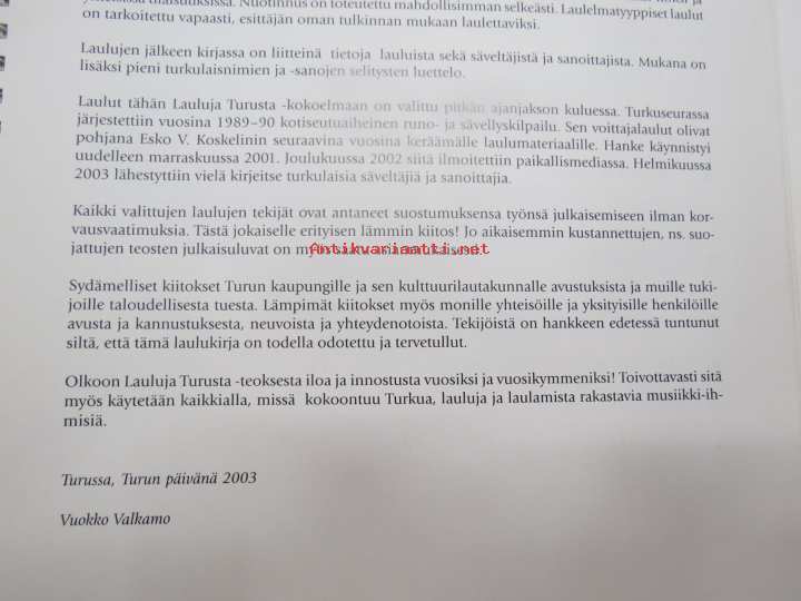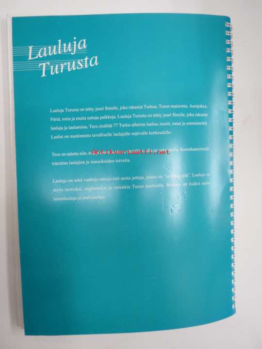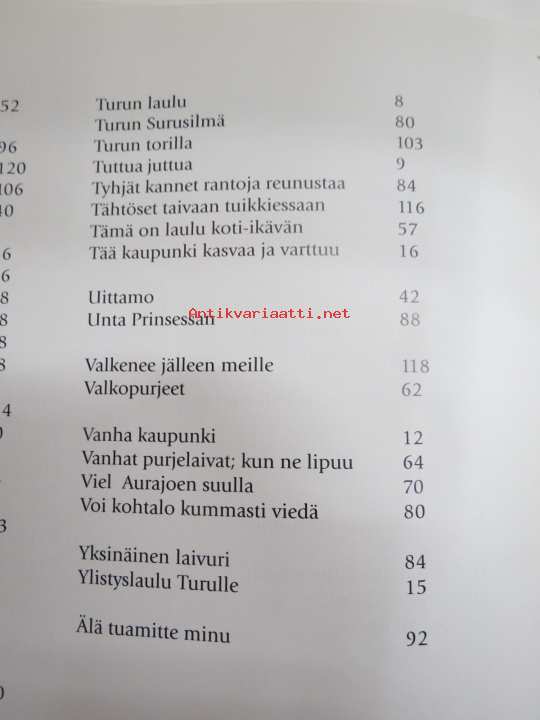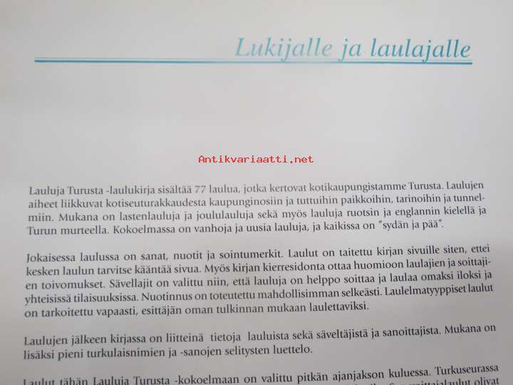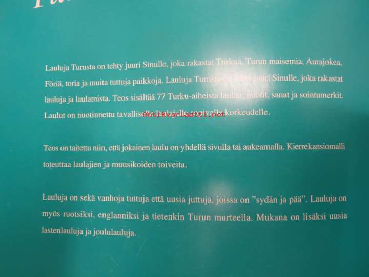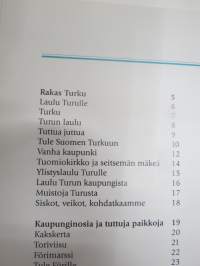 Turkuseura, 200321 x 30 cm. 77 Turku-aiheista laulua, sanat ja nuotit, tiedot lauluista ja tekijöistä.