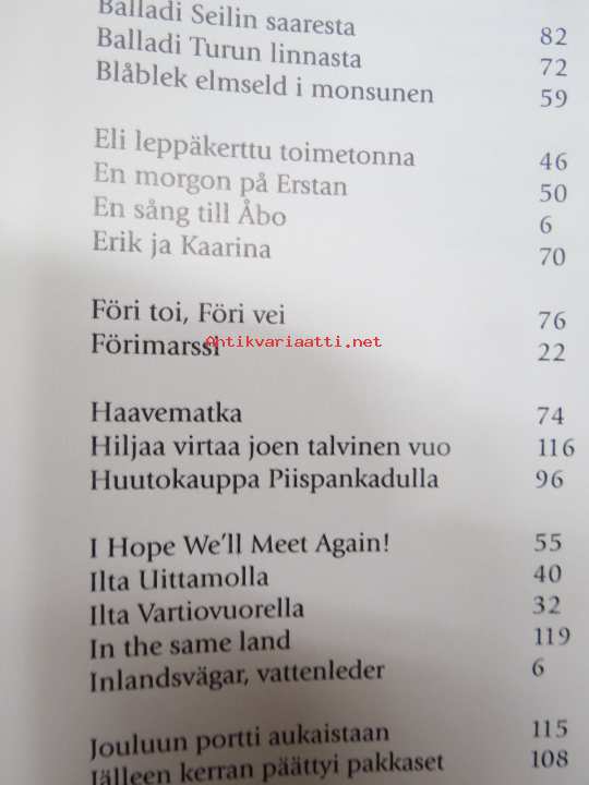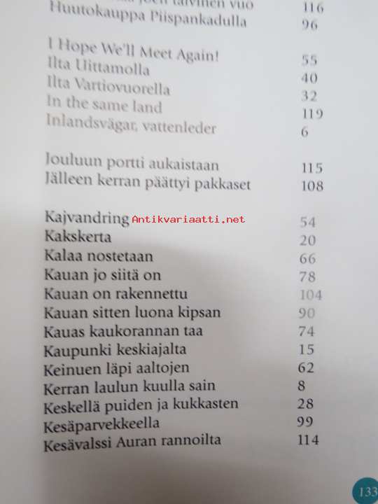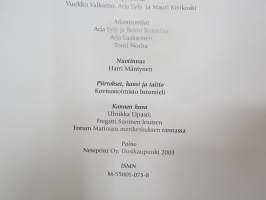 | Saatavilla | 1 kpl | | Julkaisuvuosi | 2003 | | Sivuja | 134 | | Painos | 1. | | Kunto | K3 | | Sidonta/painoasu | Muu | | Kielet | Suomi |