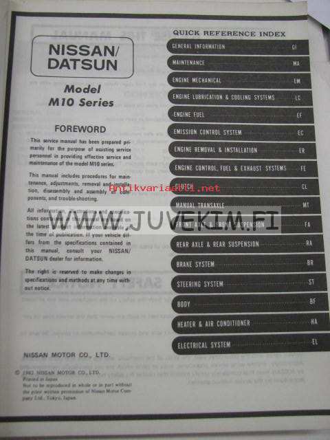 Datsun Nissan Prairie model M10 series Service Manual