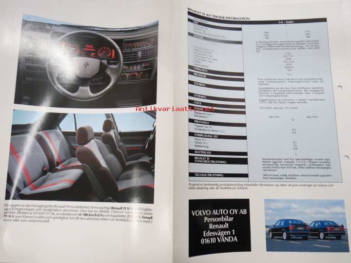 Renault 19 16 V -myyntiesite / sales brochure