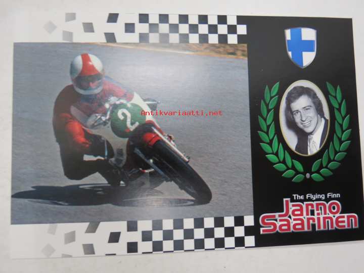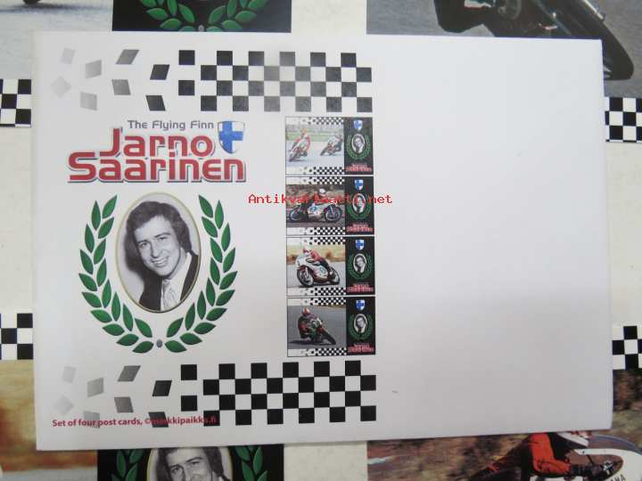 Jarno Saarinen - The Flying Finn -postikorttisarja 4 kpl kortteja + kuori / post card 4 pcs + envelope with print