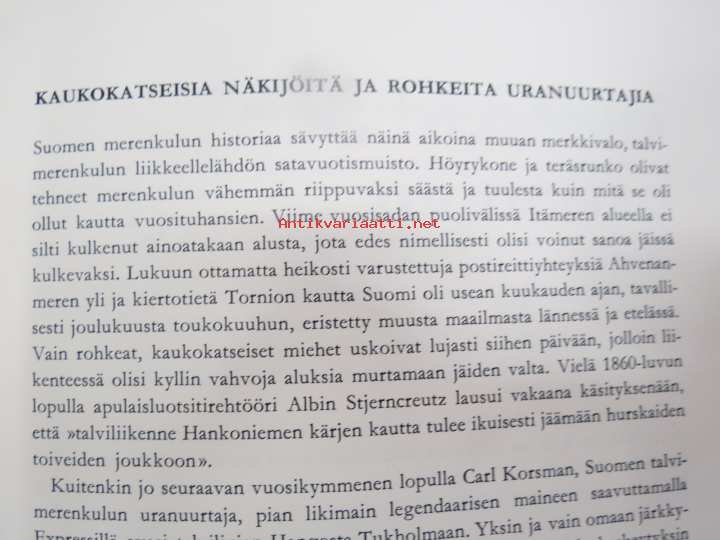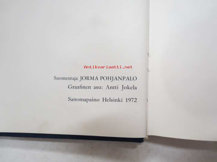 | Saatavilla | 0 kpl (Huom. tuote on myyty! / Sold out!) | | Julkaisuvuosi | 1972 | | Sivuja | 155 | | Painos | 1. | | Kunto | K2 | | Kannet kuluneet | | Sidonta/painoasu | Sidottu (kovak.) | | Kielet | Suomi |