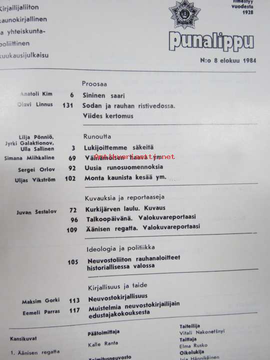 Punalippu 1984 vuosikerta - Karjalais-Suomalaisen SNT:n neuvostokirjailijain liiton kirjallis-taiteellinen ja yhteiskunnallis-poliittinen aikakausjulkaisu