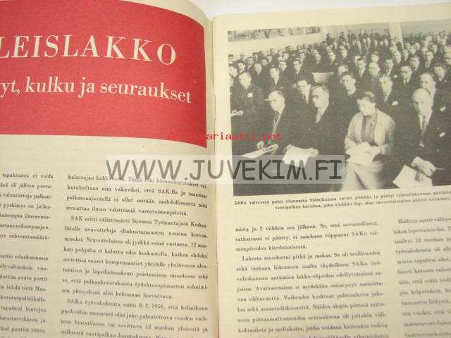 Suomen Ammattiyhdistysten Keskusliitto SAK, 1956 21 x 30 cm kirja.