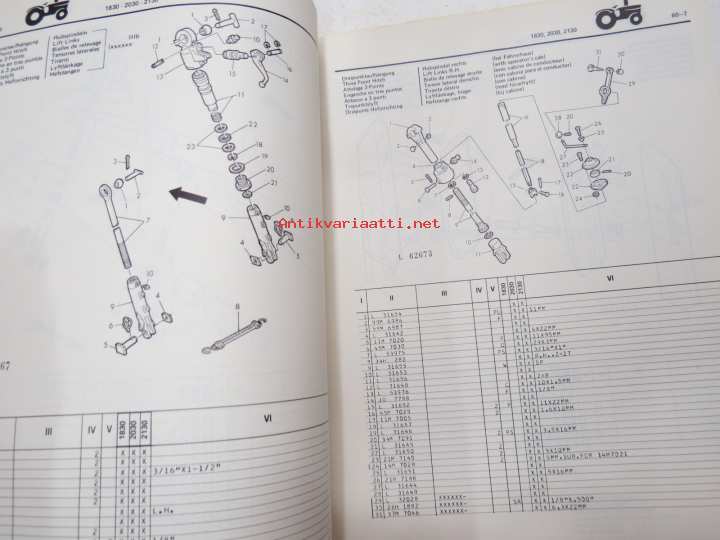 John Deere 1830, 2030, 2130 Tractor Parts Catalog -varaosaluettelo