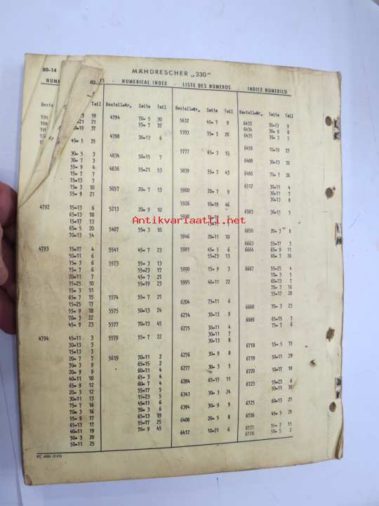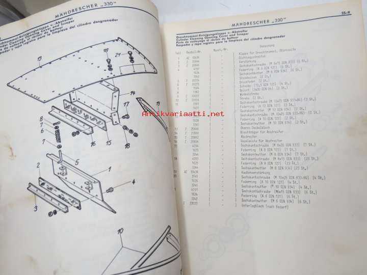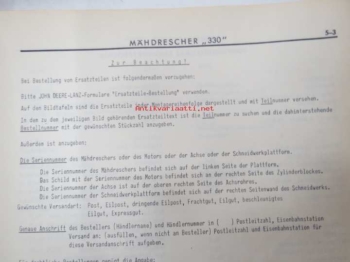 John Deere 330 Mähdresser Ersatzteilliste -varaosaluettelo, leikkuupuimuri