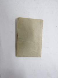 | Saatavilla | 1 kpl | | Julkaisuvuosi | 1936 | | Kunto | K2 | | Etu- ja takasivu irtoamassa | | Sidonta/painoasu | Nidottu (pehmeäk.) | | Kielet | Suomi |