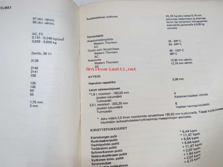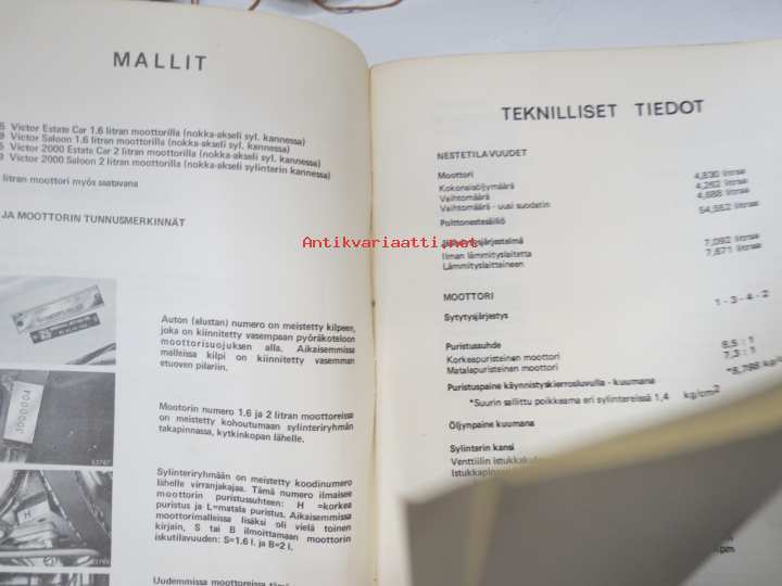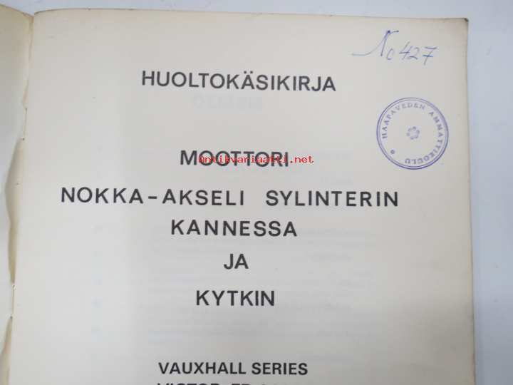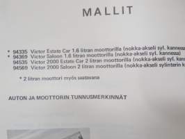 Vauxhall Victor FD 94000 huoltokäsikirja - Moottori, nokka-akseli sylinterin kannessa ja kytkin -korjaamokirjasarjan osa
