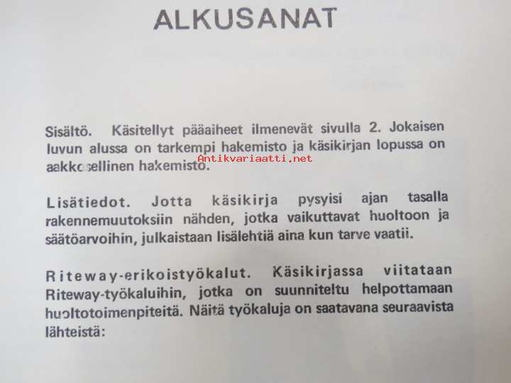 | Saatavilla | 1 kpl | | Julkaisuvuosi | 1968 | | Sivuja | 72 | | Kunto | K2 | | Sidonta/painoasu | Nidottu (pehmeäk.) | | Kielet | Suomi |