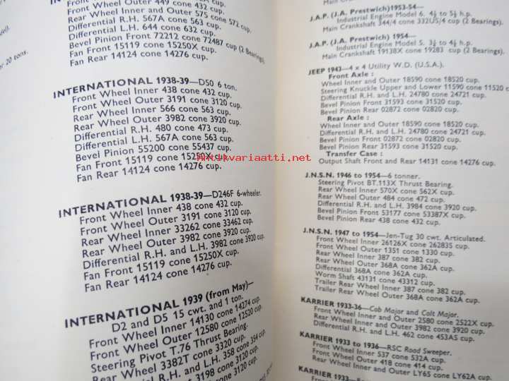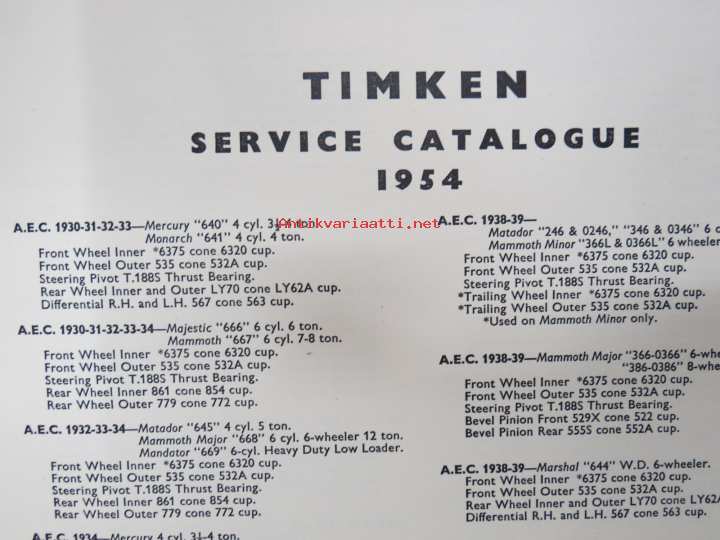 Timken 1954 Service Catalogue Section 2 Lorries & Trailers rolled bearings -laakeriluettelo