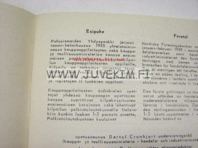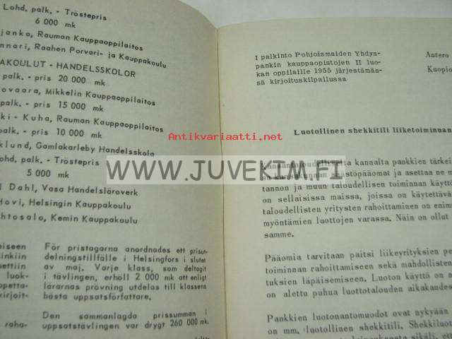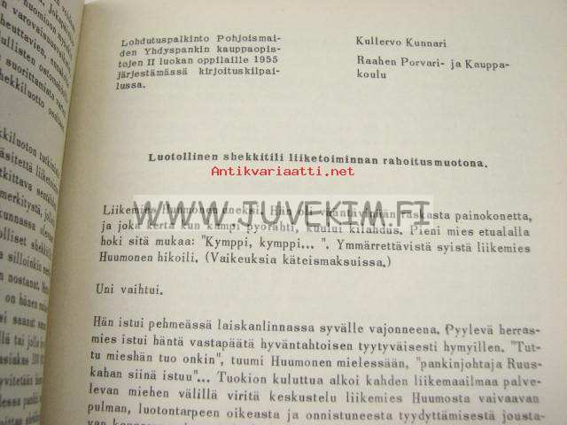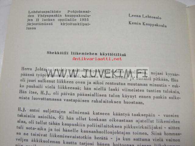 Liikemies ja shekkitili Pohjoismaiden Yhdyspankin kauppaoppilaitosten oppilaille v. 1955 järjestämän kirjoituskilpailun aineet