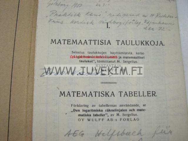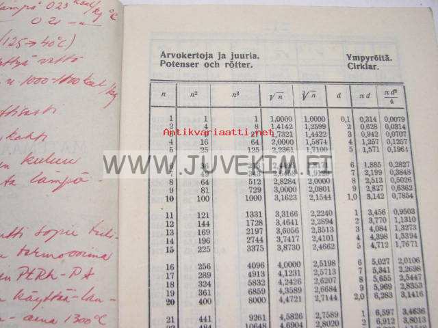 Ammattikoulujen matemaattiset ja teknilliset taulukot Yrkesskolornas matematiska och tekniska tabeller