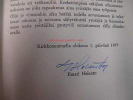Helanto Ilmari, Arex Oy, 1977 Ilmari Helannon nimikirjoitus lukijalle sivulla.