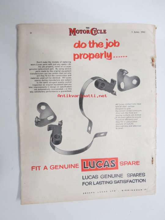 The Motor Cycle, 5.4.1962, english motorcycle magazine / englantilainen moottripyörälehti