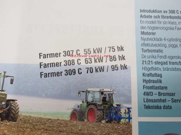 Fendt Farmer 307 C, 308 C, 309 C traktori -myyntiesite, ruotsinkielinen / tractor sales brochure, in swedish
