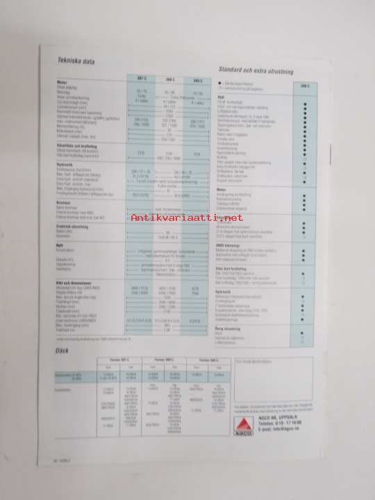 Volvo kuorma-autojen tekniset tiedot -kansio, sisältää myös tyyppikatsastustodistuksia, huoltotiedotuksia ym. ison määrän