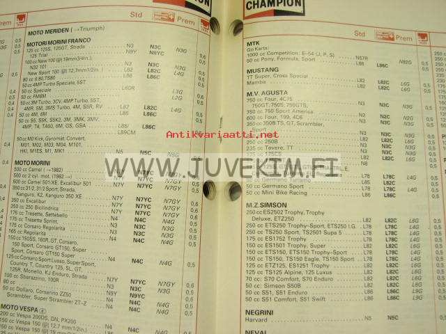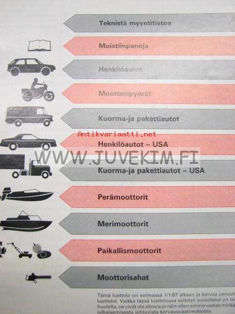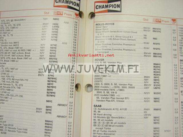 Champion sytytystulpat 1987 -luettelo
