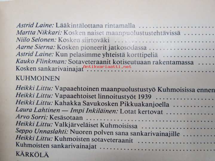 Osmo Korosuo, Lennart Haukijärvi, Laila Ketola, Eino Seppälä, Lahden Sotaveteraanipiiri ry, 198118 x 25 cm.