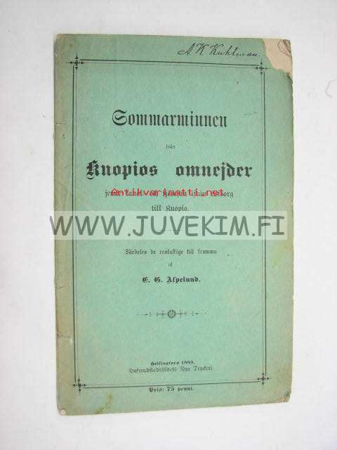 Sommarminnen från Kuopios omnejder jemte kanal -och sjöresan ifrån Viborg till Kuopio