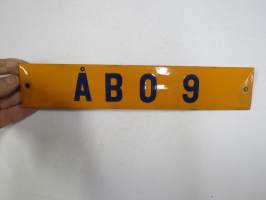 Åbo 9, postitoimipaikan kyltti, emalia, valmistaja Peltiteos Oy