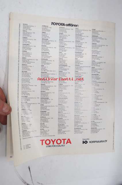 Toyota Modellerna 1986 -myyntiesite, ruotsinkielinen / sales brochure, in swedish