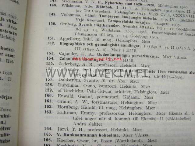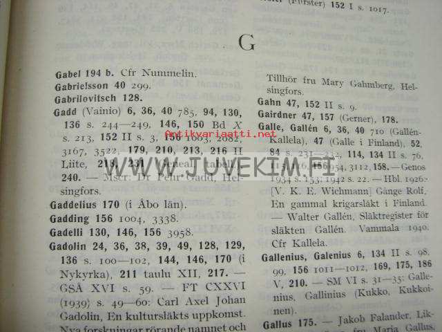 Sivén Gunnar, Suomen Sukututkimusseura, 1943 17 x 24 cm kirja.