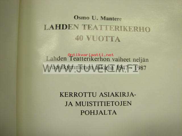 Mantere Osmo U., Lahden Teatterikerho, 1987 15 x 21 cm kirja.