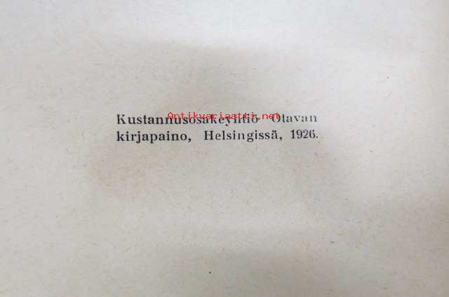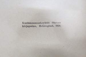 | Saatavilla | 0 kpl (Huom. tuote on myyty! / Sold out!) | | Julkaisuvuosi | 1926 | | Sivuja | 90 | | Painos | 1. | | Kunto | K3 | | Sidonta/painoasu | Sidottu (kovak.) | | Kielet | Suomi |