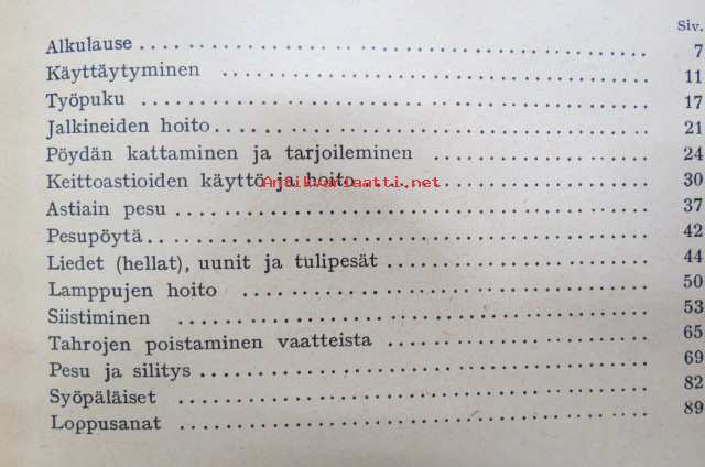 Talousapulaisen työopas - neuvoja ja kokemuksia kodin hoidon alalta -kotiapulaisten käyttöön tarkoitettu oppikirja