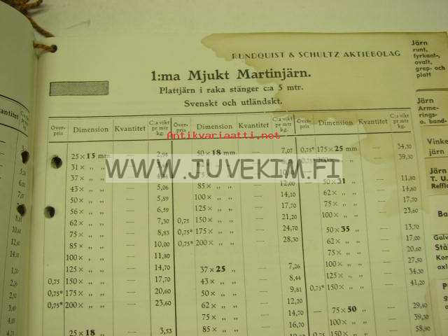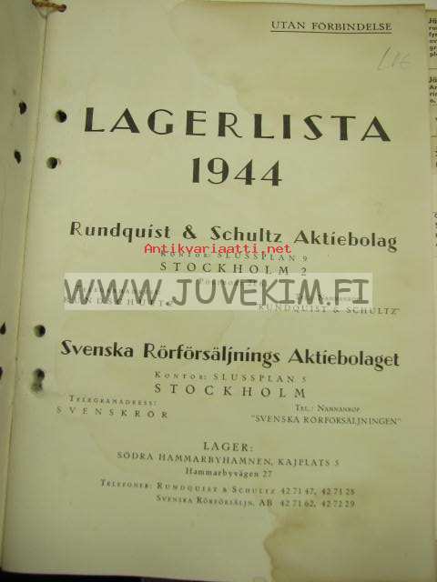 Rundqvist & Schultz Ab 1944 Lagerlista -tuoteluettelo