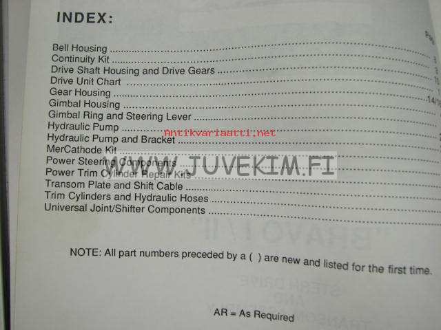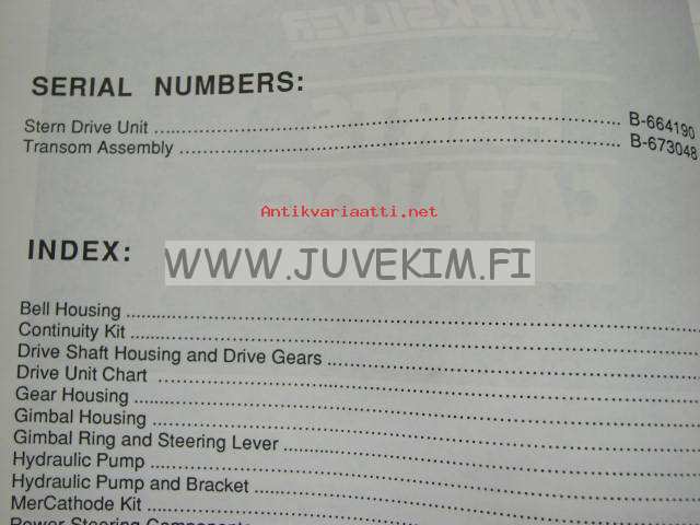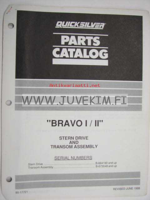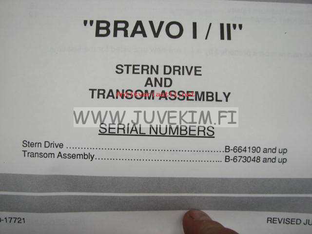 Quicksilver parts catalog -"Bravo I / II" Stern drive and transom assembly serial numbers Stern drive B-664190 and up, Transom assembly B-673048 and u