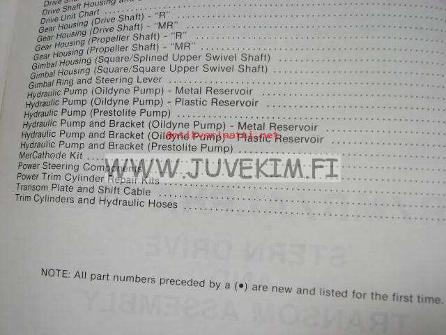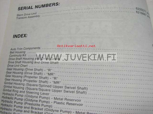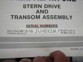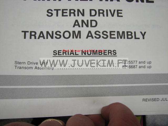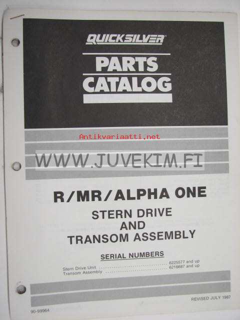 Quicksilver parts catalog -R / MR / Alpha one stern drive and transom assembly serial numbers Stern drive 6225577 and up, Transom assembly 6216687 and