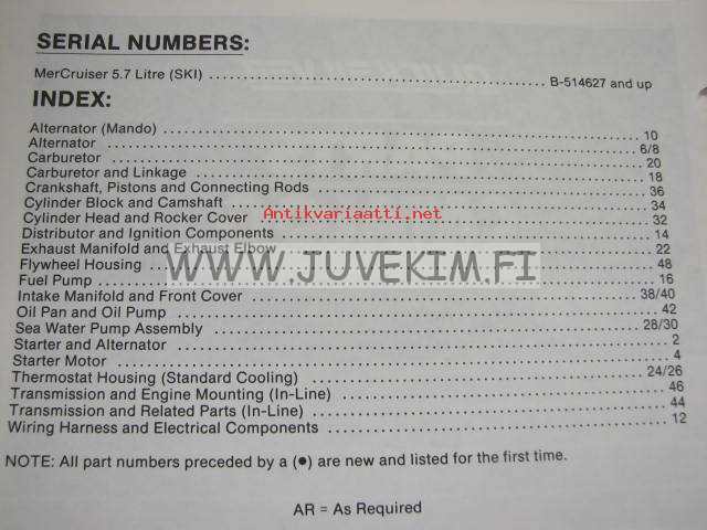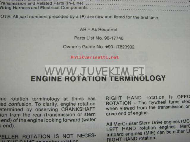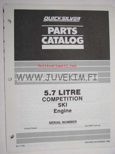 Quicksilver / Mercruiser parts catalog -5.7L Competition Ski Engine serial numbers US B-514627 and up -varaosaluettelo